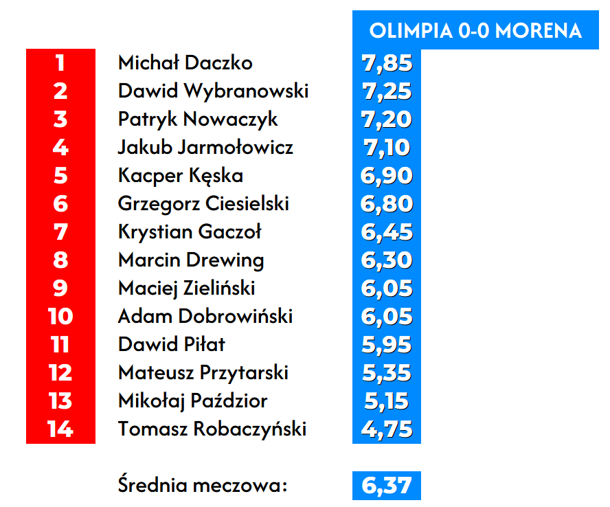 Podsumowanie Waszych głosów za wczorajszy mecz z Olimpią Osowa.