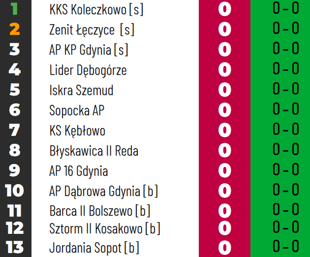 W zestawieniu kilka nowych zespołów, do tego bardzo duża ilość zespołów rezerwowych. Mam nadzieję, że osoby odpowiedzialne w tych klubach będą pamiętać o magicznych 2/3 meczów w sezonie.