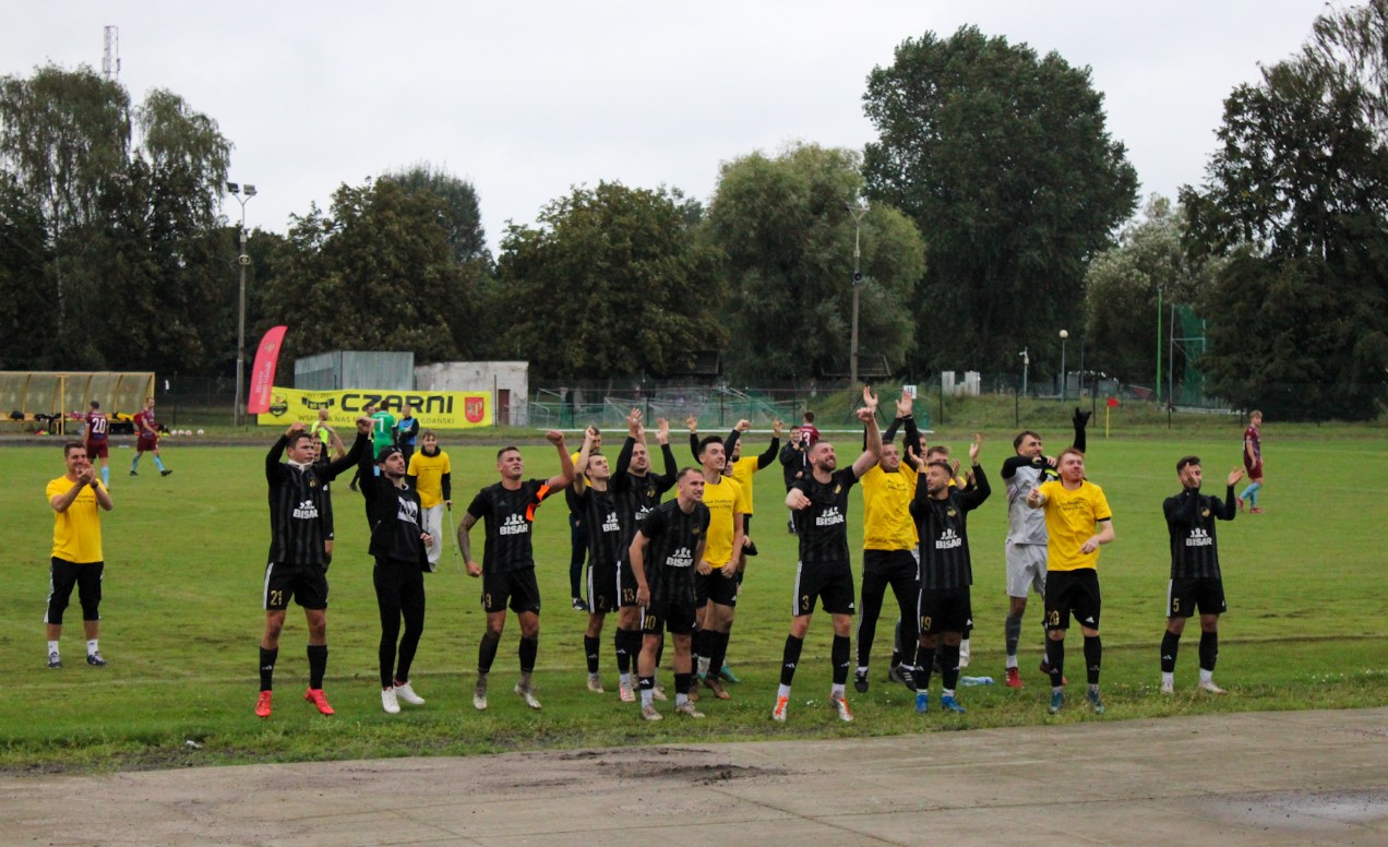 W ostatnim dzisiejszym meczu w Pruszczu Gdańskim Czarni pokonali 1-0 walczącą o utrzymanie Pogoń Lębork. Goście bardzo liczyli na jakieś punkty w starciu z rywalem ze środka tabeli, ale nie byli w stanie zdobyć choćby jednego gola. Czarni wygrali już jedenasty mecz w tym sezonie i w tabeli mają tylko jeden punkt mniej od rezerw Arki i Jaguara Gdańsk. Pogoń wraz z Kolbudami, Gryfem i Powiślem na granicy strefy spadkowej.
